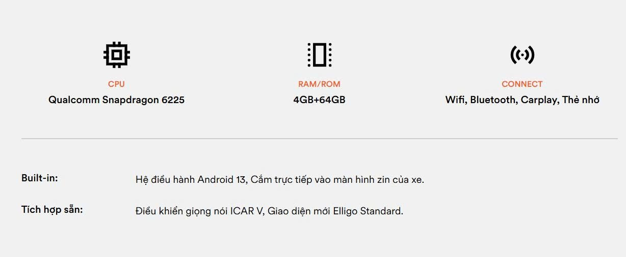 Với việc sử dụng chip Snapdragon 6225 mới nhất, Android Box Elliview D5 Plus mang đến hiệu suất xử lý mạnh mẽ và nhanh chóng hơn. Chip này được tối ưu hóa để xử lý nhiều ứng dụng cùng lúc mà không gặp phải hiện tượng giật lag, mang đến trải nghiệm người dùng liền mạch và dễ chịu. Bất kể bạn đang sử dụng tính năng thông minh nào, từ điều khiển giọng nói ICAR V cho đến hệ thống giải trí đa tầng, mọi thứ đều diễn ra mượt mà và chính xác trên màn hình zin của xe.