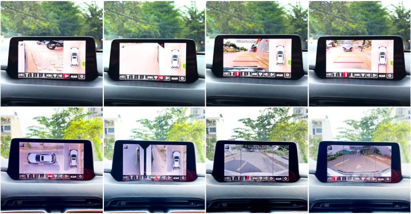 8 góc cam mà ICAR Elliview M12 Lite mang đến cho chủ nhân Mazda gồm: Toàn cảnh và phía trước/ Toàn cảnh và hình mở rộng phía trước/ Toàn cảnh và phía sau/ Toàn cảnh và hình mở rộng phía sau/ Chế độ nhìn xung quanh/ Chế độ nhìn 2 bên bánh xe.