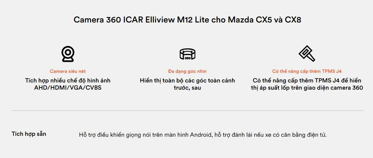 Camera 360 ICAR Elliview M12 Lite không chỉ là một nâng cấp tiện ích mà còn mang đến trải nghiệm lái xe an toàn và hiện đại tối ưu nhất cho người lái xe Mazda CX5, CX8.