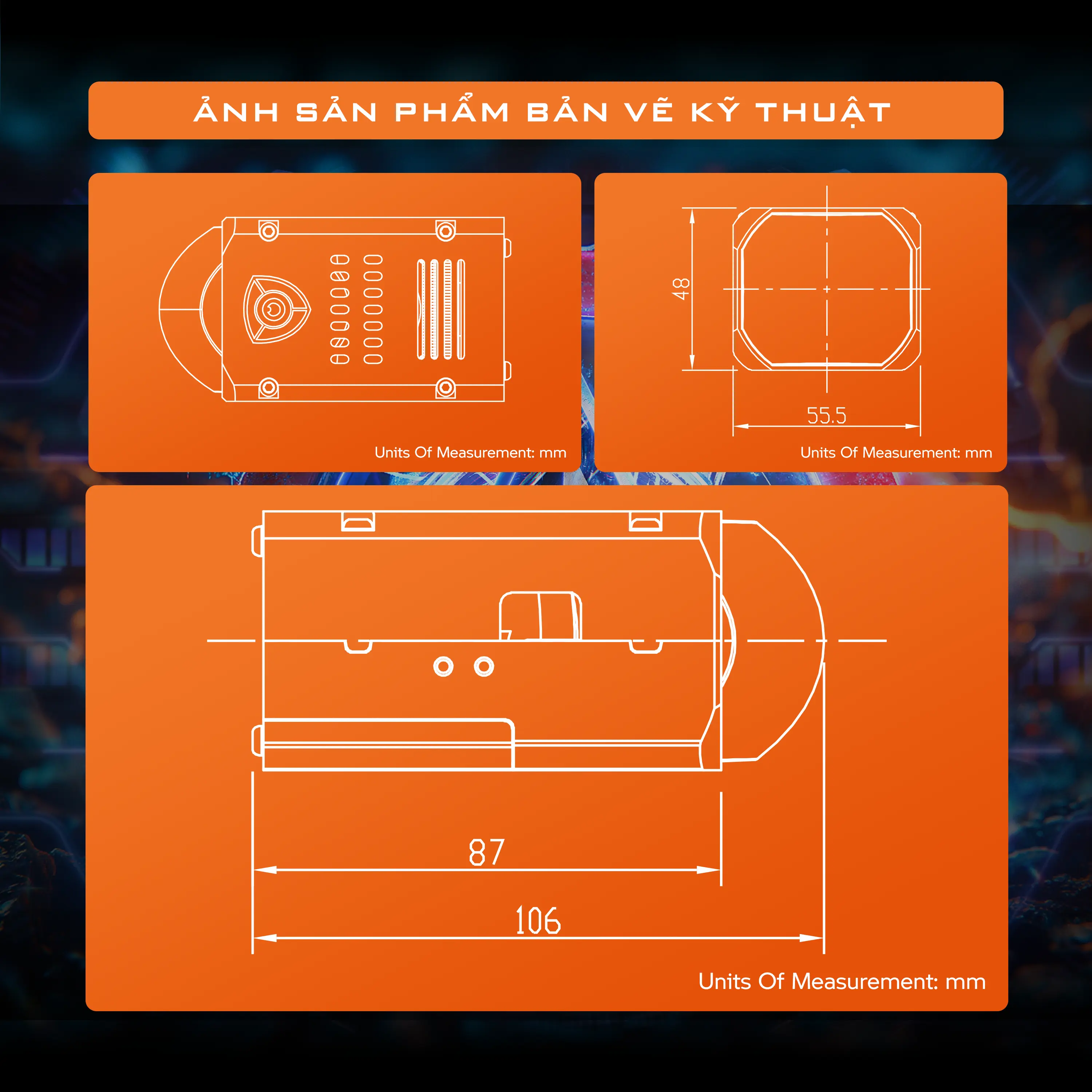 Thiết kế 1.8-inch với chất liệu hợp kim liền khối bền chắc, dễ dàng ghép cụm trên chóa đèn hẹp.