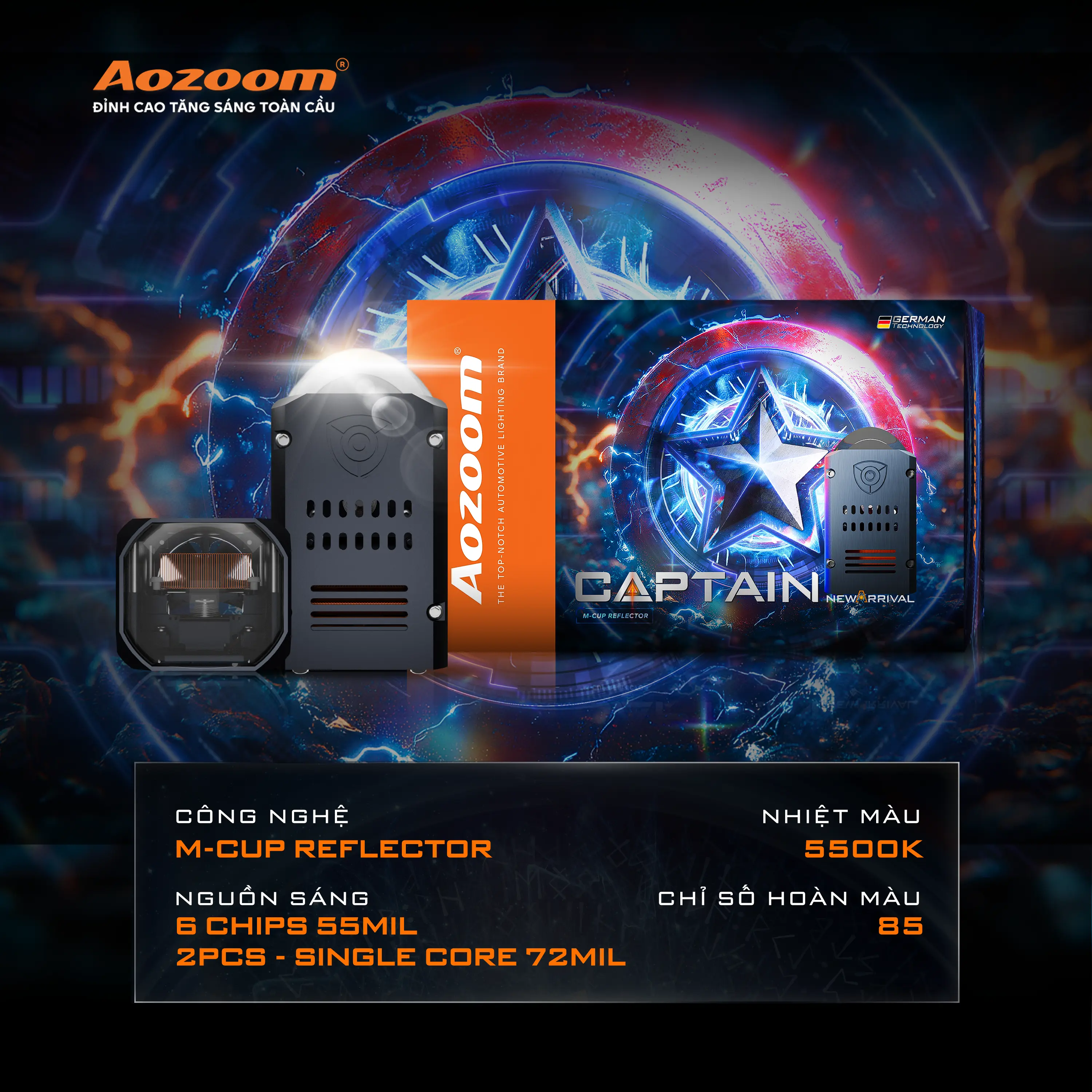 Thừa hưởng tinh thần chiến binh của người Đội trưởng Mỹ huyền thoại, BI-LED CAPTAIN NEW ARRIVAL 1.8 inch tái định nghĩa trải nghiệm ánh sáng với công nghệ chóa M-CUPs, mang đến nguồn sáng mạnh mẽ và vùng sáng rộng, mịn. Đối mặt với bóng tối, CAPTAIN NEW ARRIVAL chính là tấm khiên chắn ánh sáng vững vàng, dẫn lối an toàn trên mọi hành trình. Khám phá ngay để trải nghiệm ánh sáng đỉnh cao!