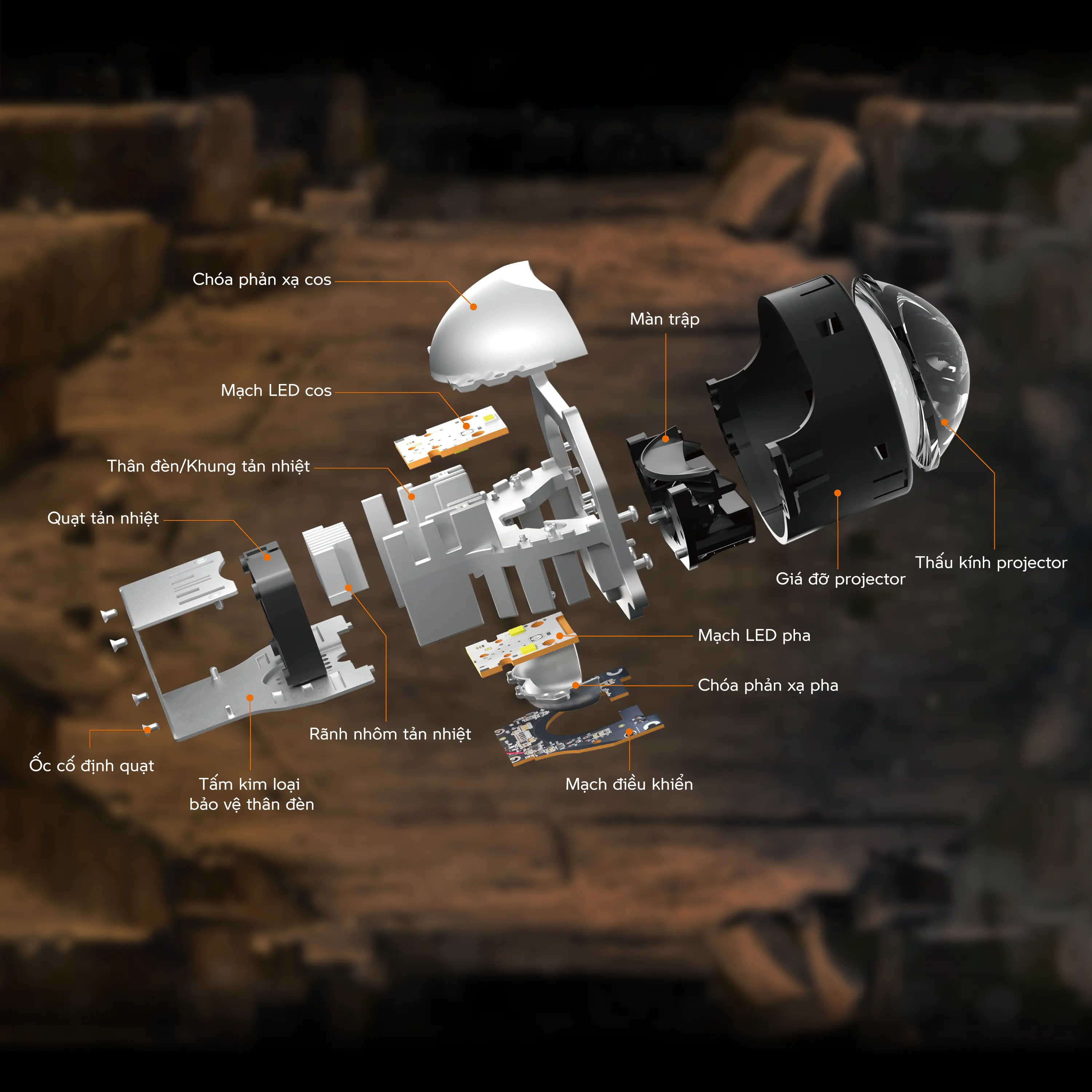 Thân hợp kim và quạt tản nhiệt đảm bảo chiếu sáng mạnh mẽ cho BI-LED cao cấp.